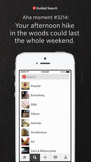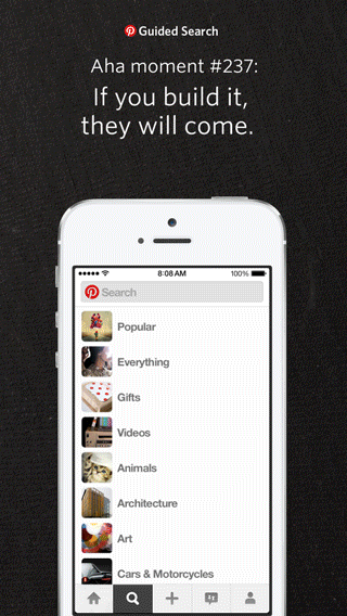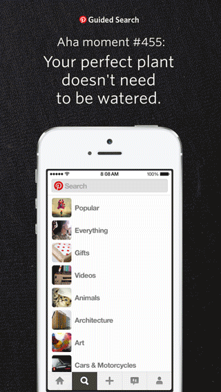 I worked with the folks over at Pinterest to make these simple UI animations that show the power of Pinterests' Guided Search. 5 different flows were created as both videos and gifs.