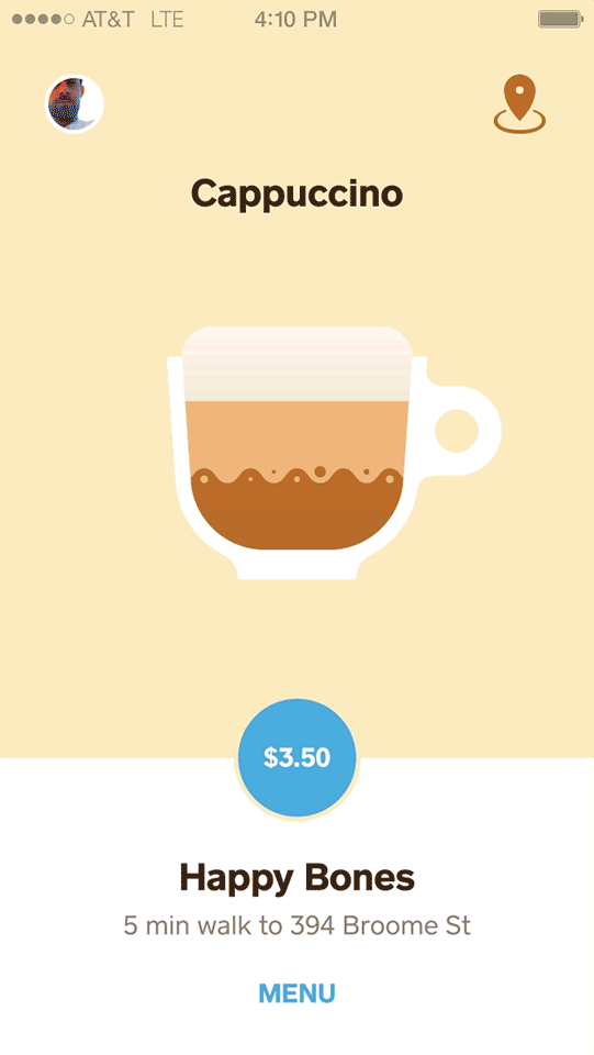 I worked with the the Square Order team to prototype how items animate as they are swiped. The illustrations were done by another artist. These animations and illustrations never made it into the product, but were fun to make regardless